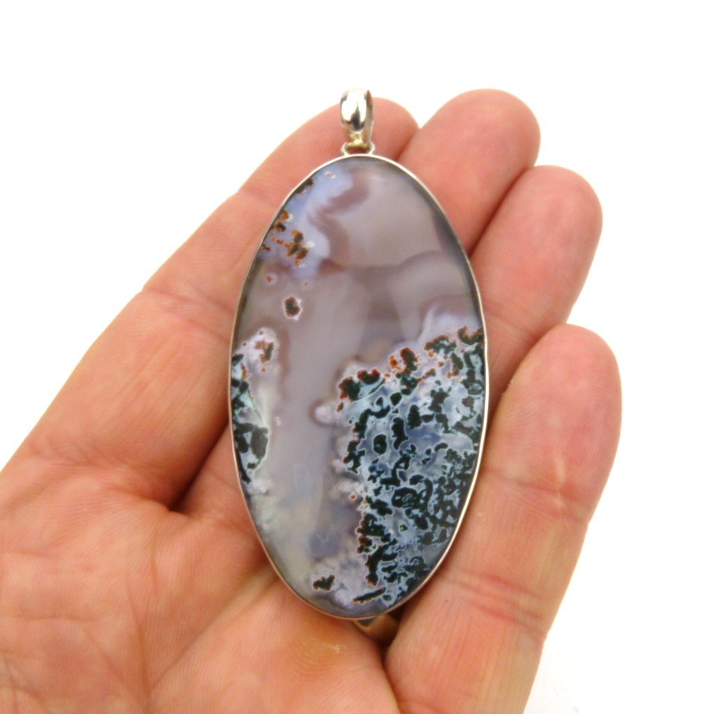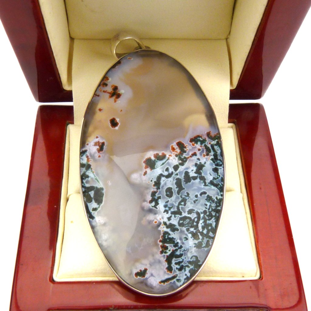 Přívěsek leštěného dendrického achátu ve stříbře Ag 925/1000.