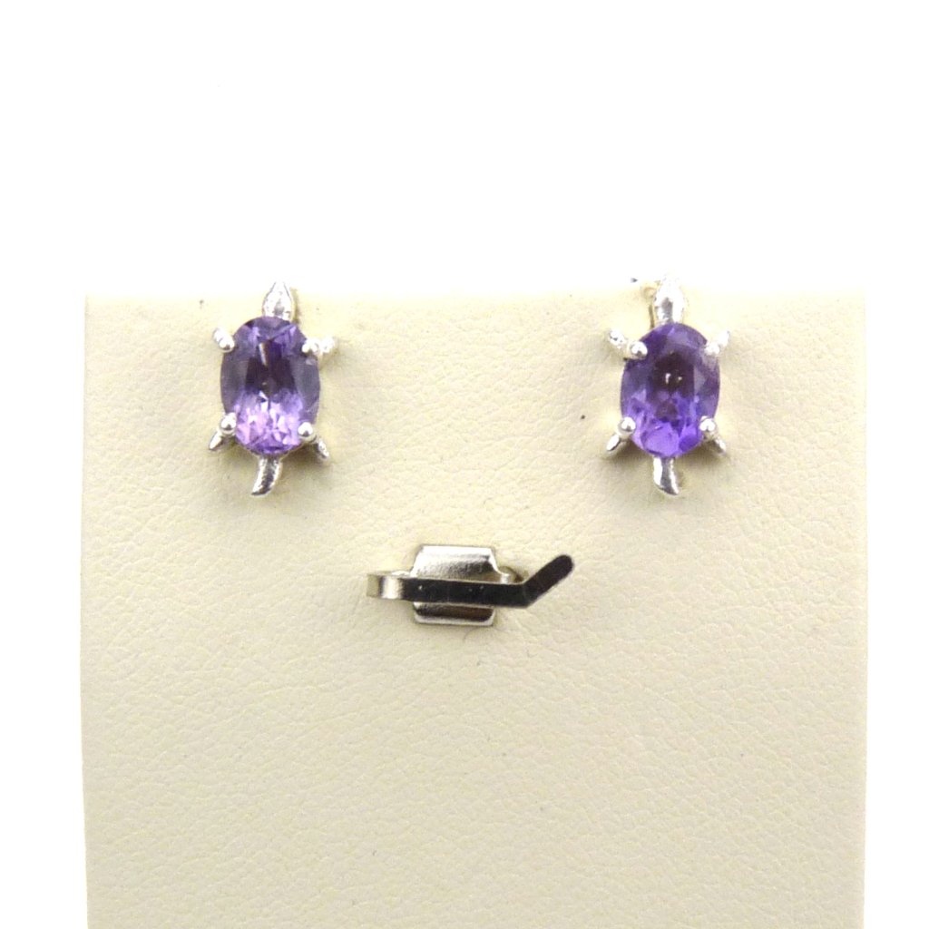 Krásné náušnice želvičky z Ametystu ve stříbře Ag 925/1000 Rhodium.