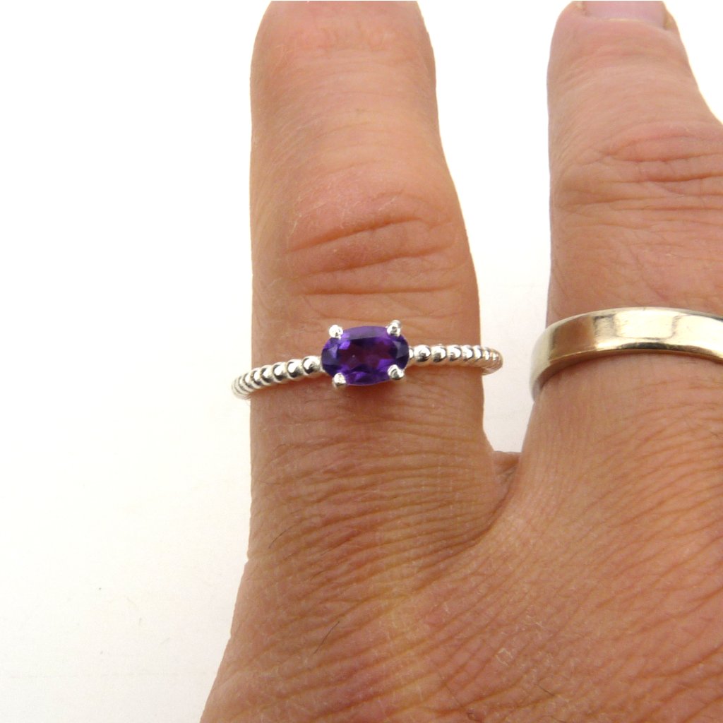 Krásný prstýnek z broušeného Ametystu ve stříbře Ag 925/1000 Rhodium.