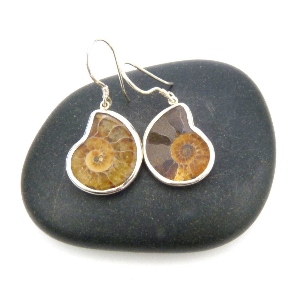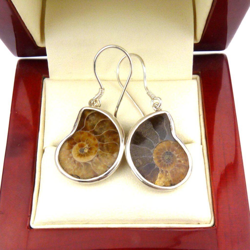 Krásné náušnice Amonitu ve stříbře Ag 925/1000 Rhodium.