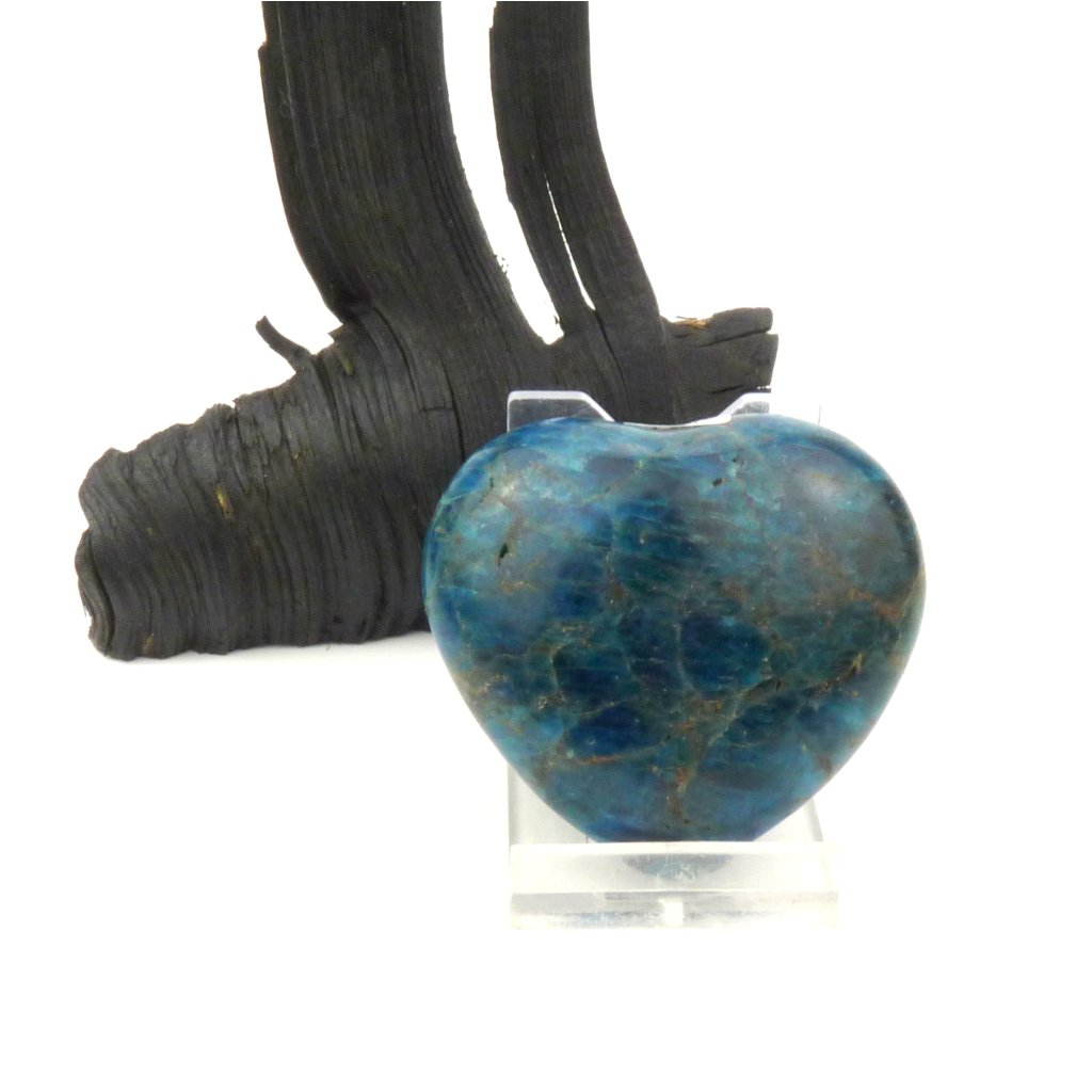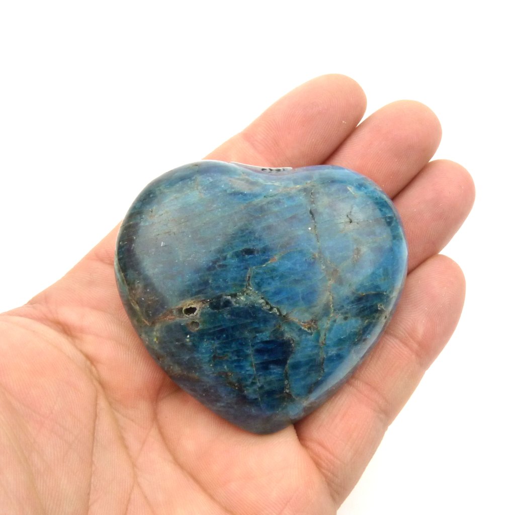 Modrý Apatit vybroušený do tvaru srdce, kámen je leštěný.