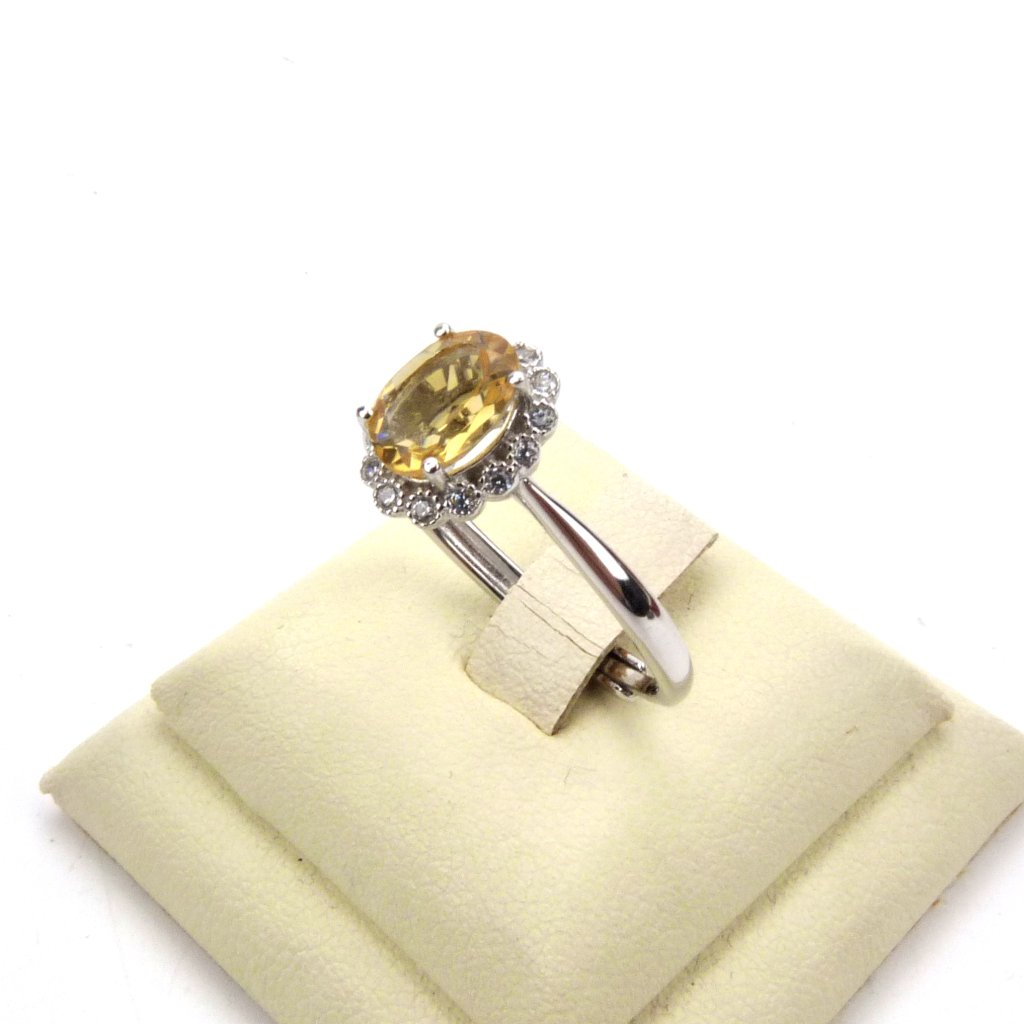 Citrín o rozměru 6*8 mm a zirkonů.