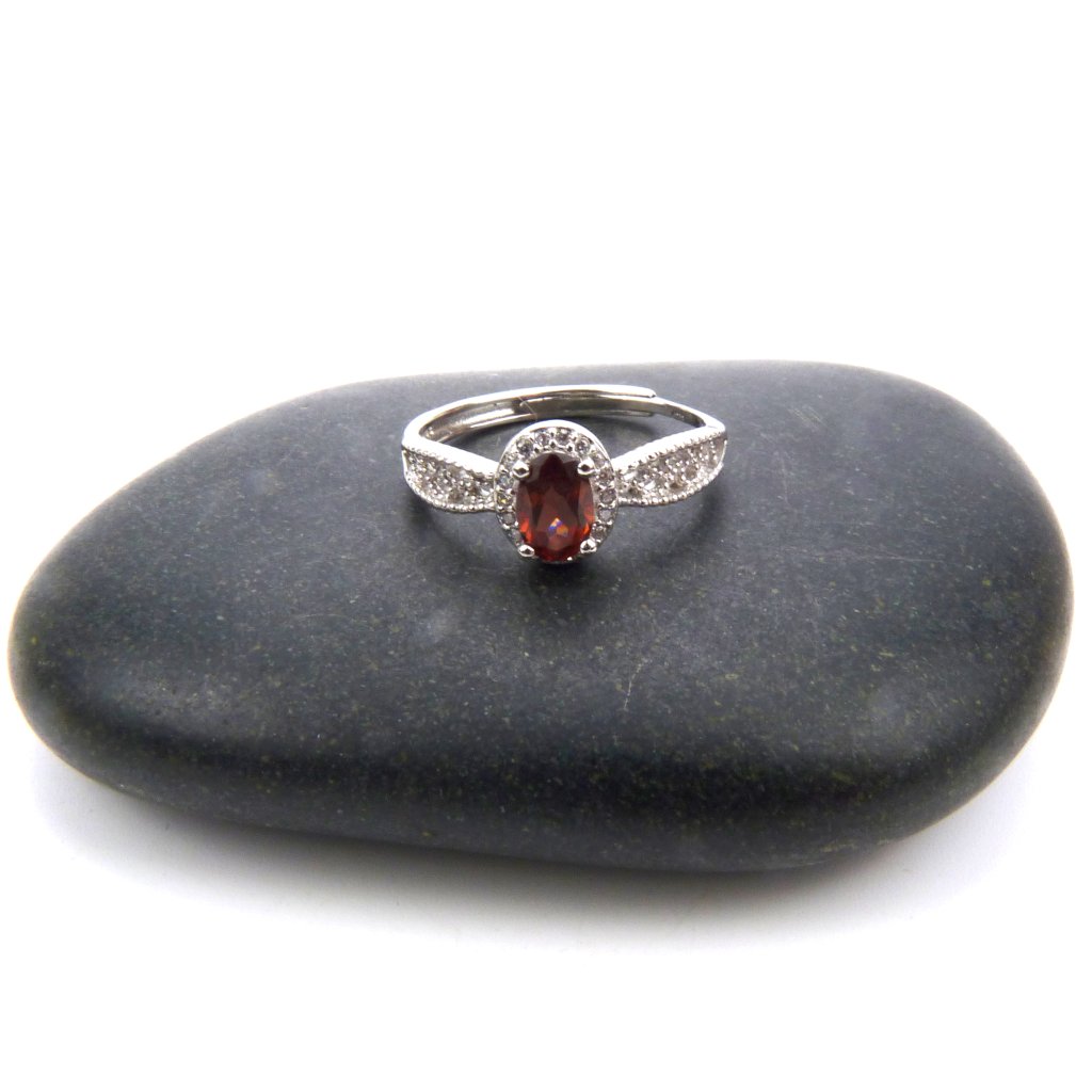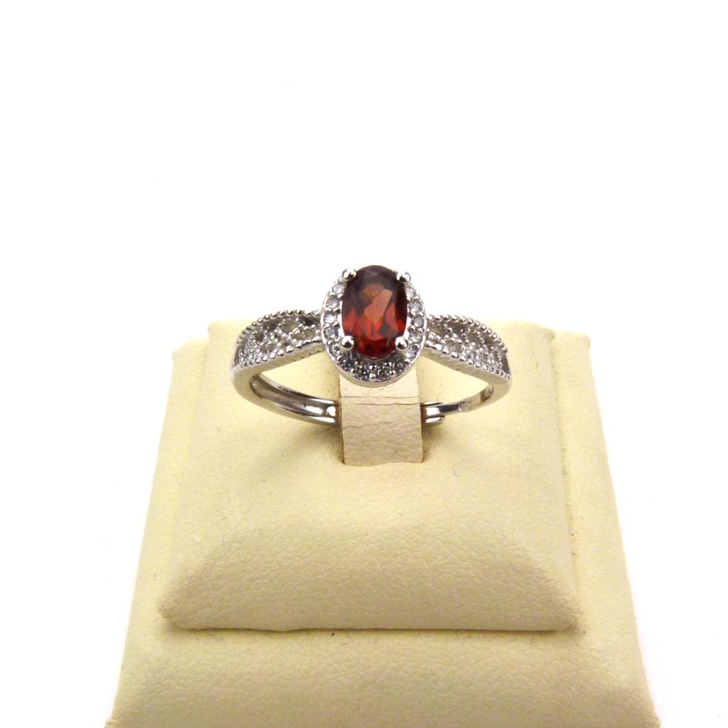 Krásný prstýnek z broušeného Granátu Rhodolitu ve stříbře Ag 925/1000 Rhodium.