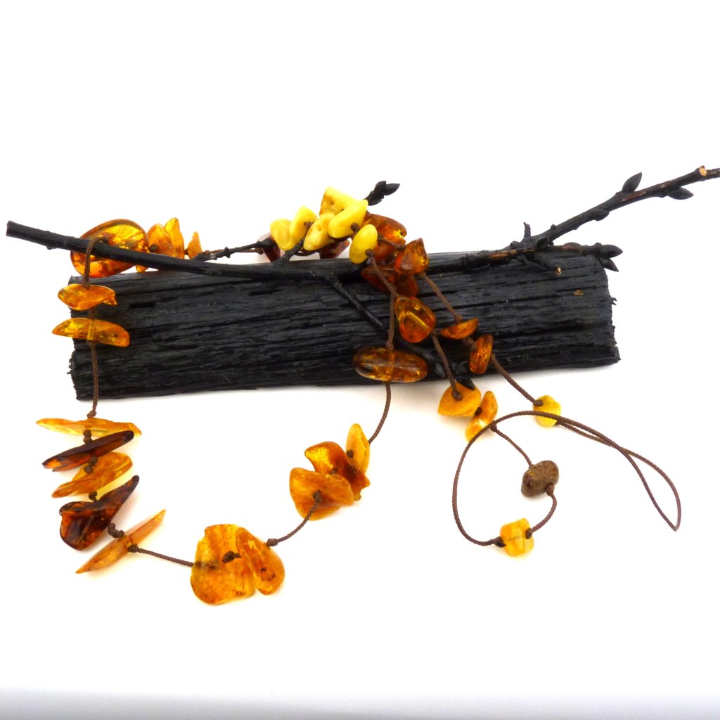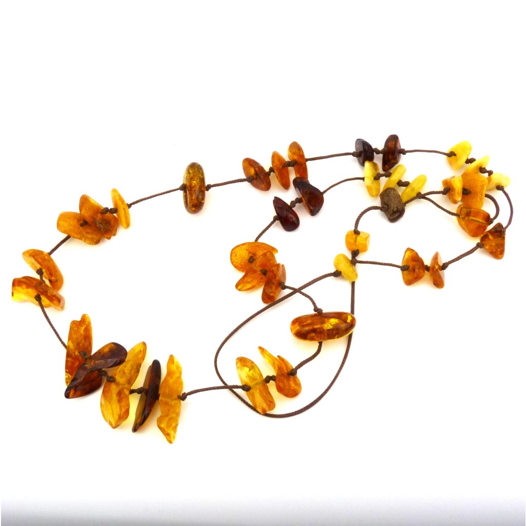 Elegantní dlouhý náhrdelník z Jantaru vysoké kvality ve formě nepravidelných tvarů.