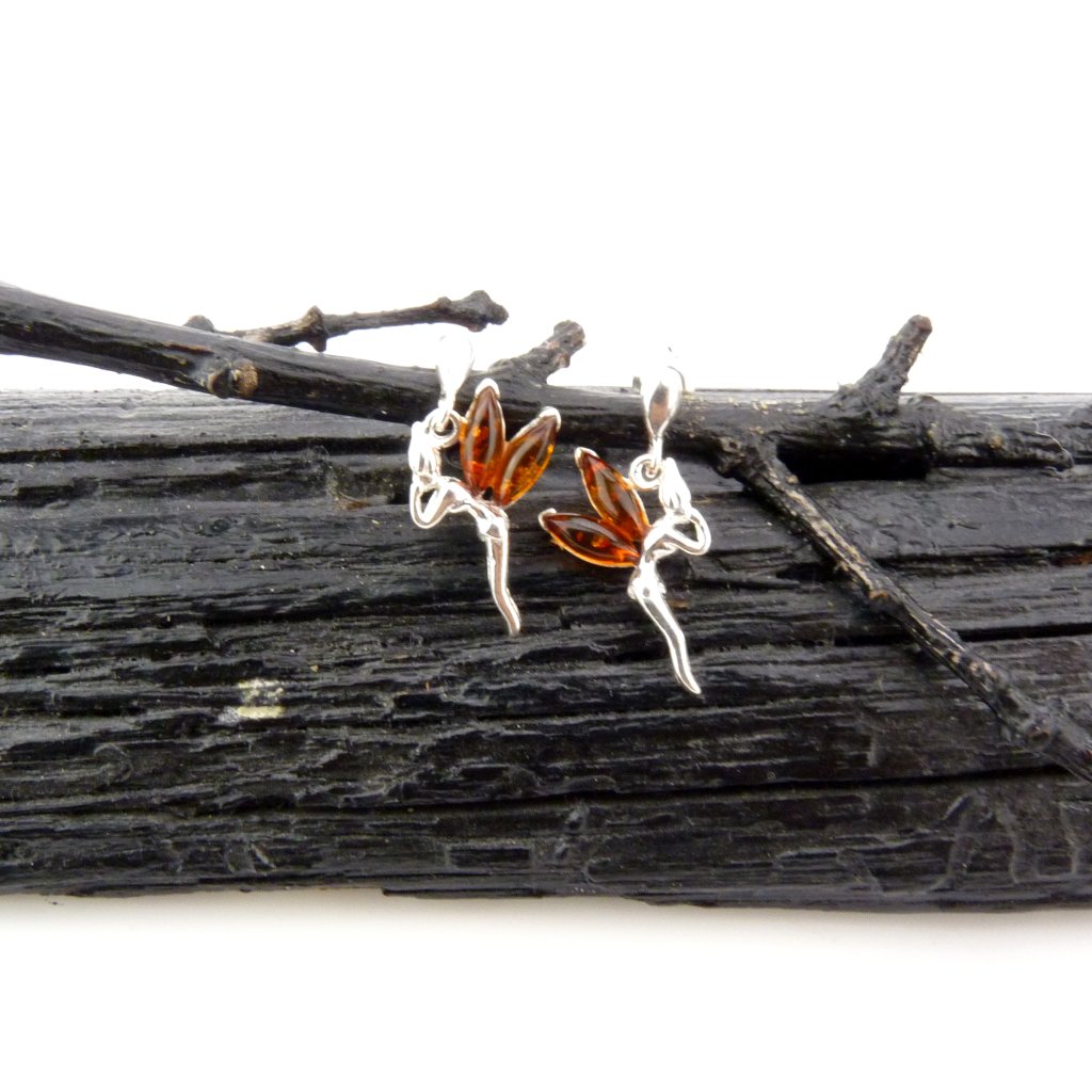 Náušnice s leštěným Jantarem ve stříbře Ag 925/1000 Rhodium (povrchová úprava).