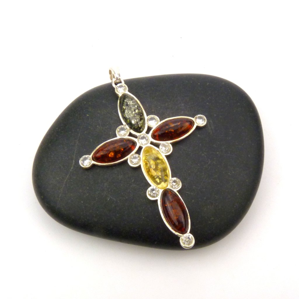 Jantarový přívěsek leštěný ve stříbře Ag 925/1000 Rhodium.