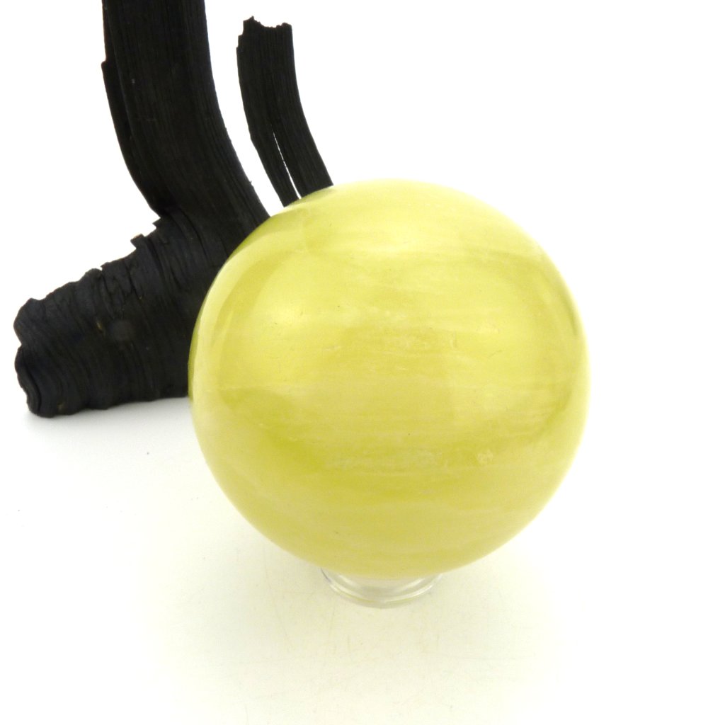 Kalcit žlutý leštěný do tvaru koule.