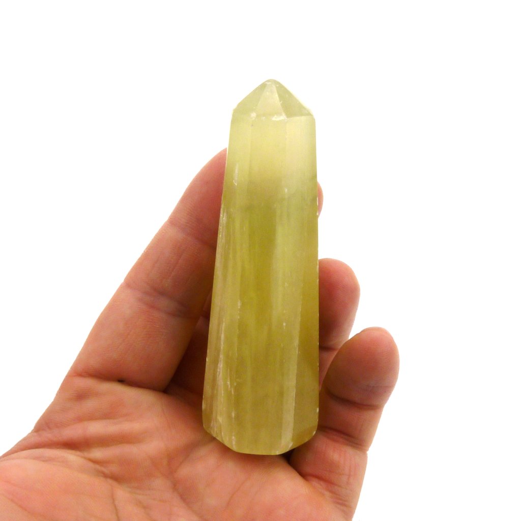 Kalcit žlutý leštěný do tvaru špice.