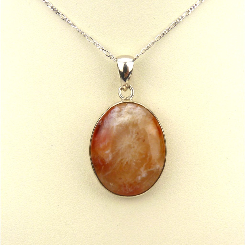Přívěsek leštěného karneolu ve stříbře Ag 925/1000.