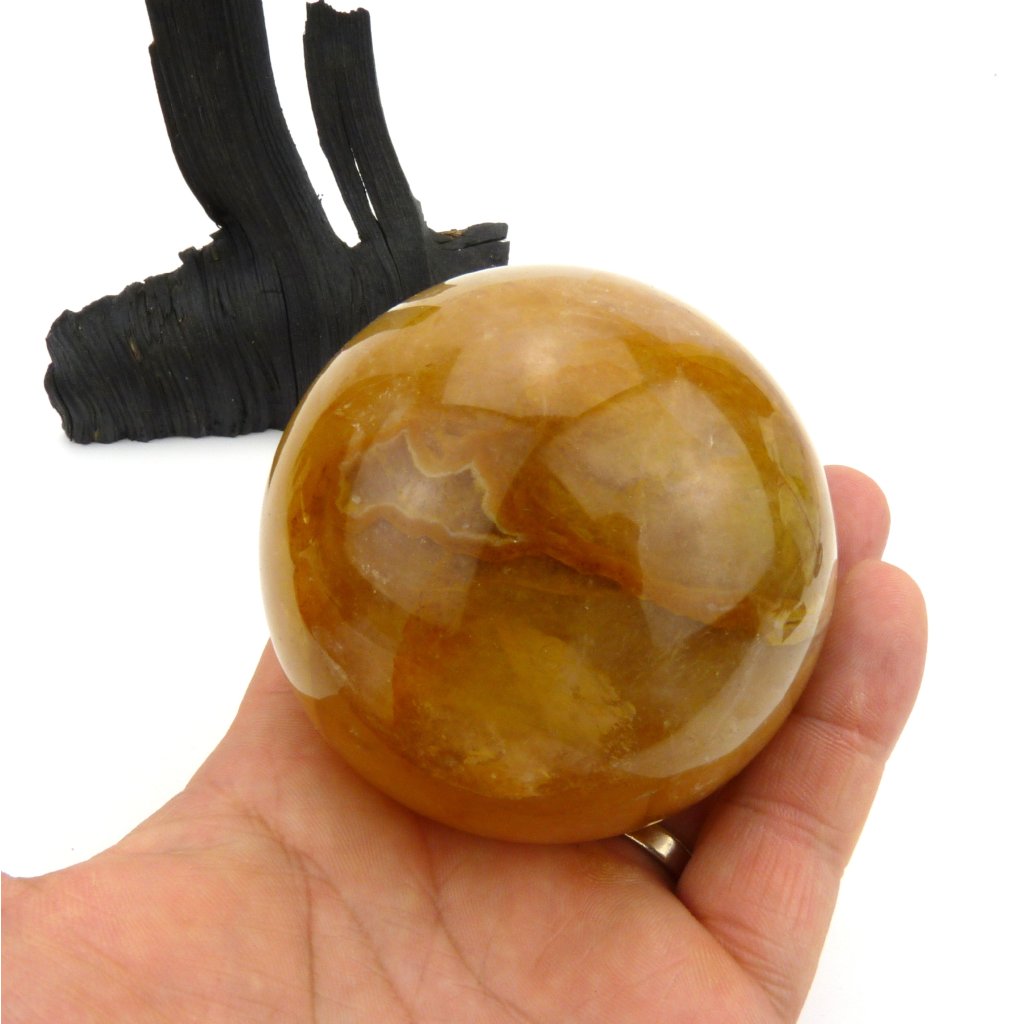 Krásný kámen Křišťálu s limonitem leštěný do tvaru koule.