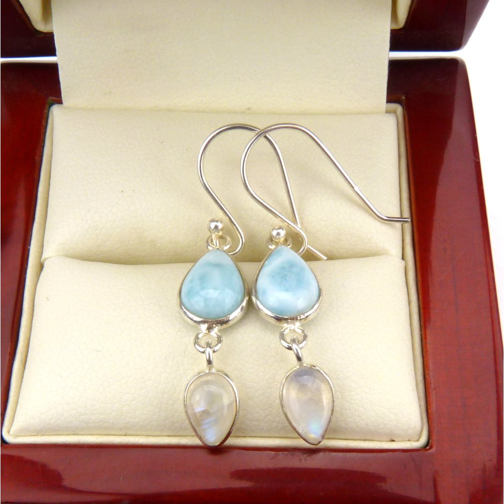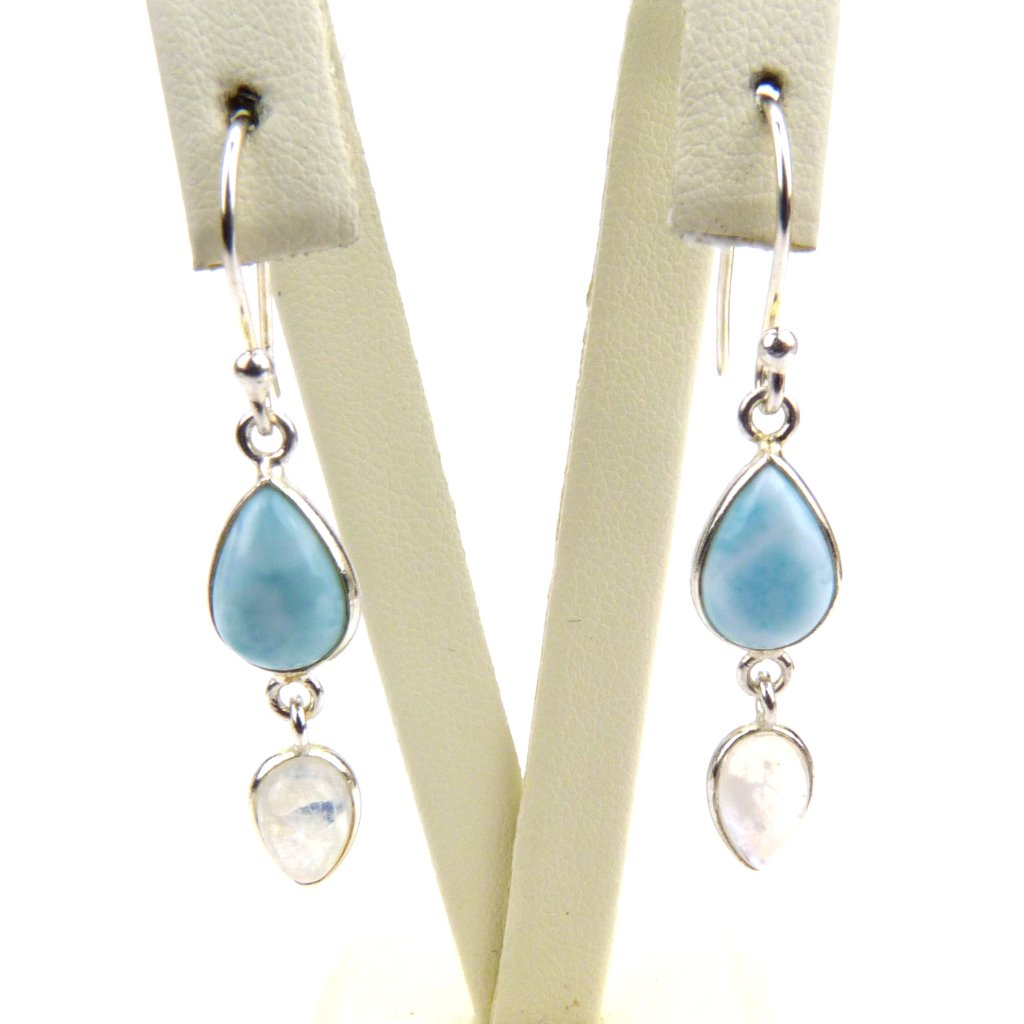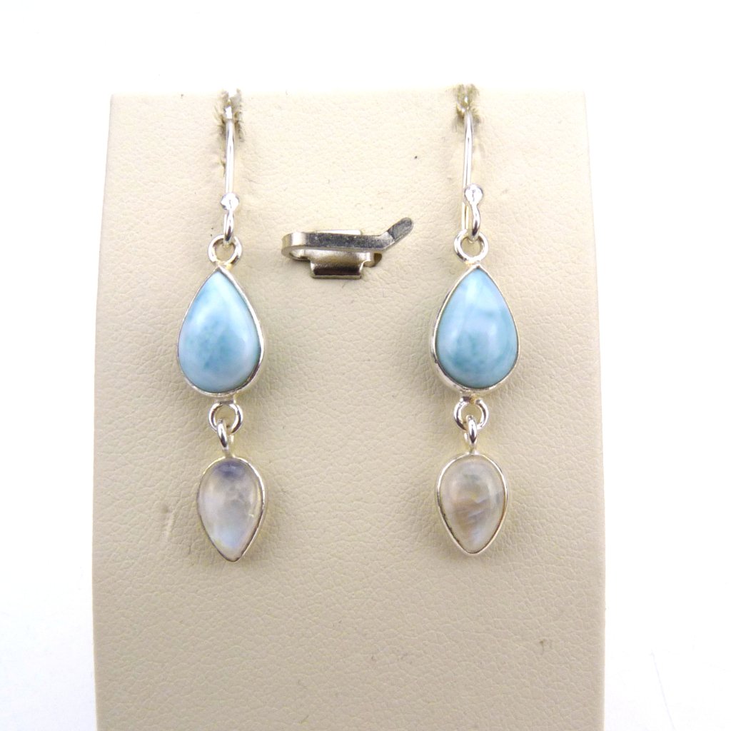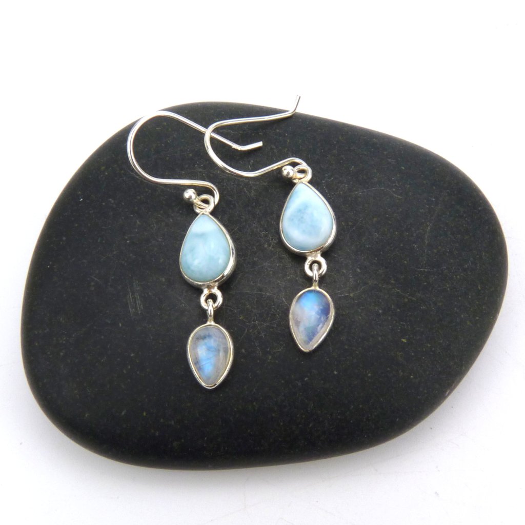 Náušnice s leštěným Larimárem a Měsíčním kamene ve stříbře Ag 925/1000 Rhodium.
