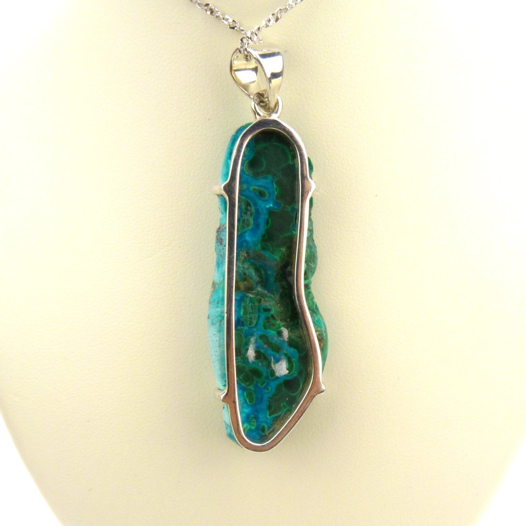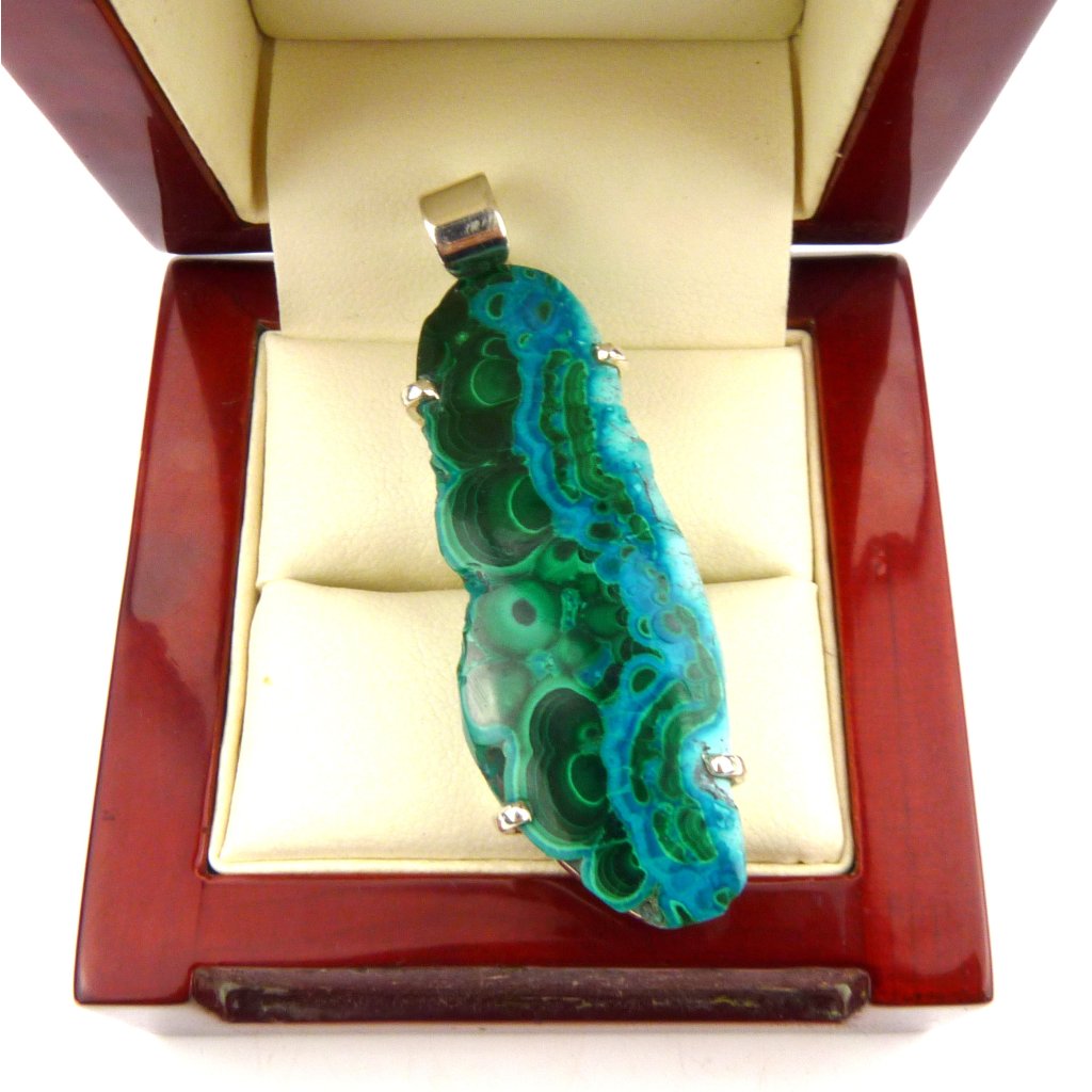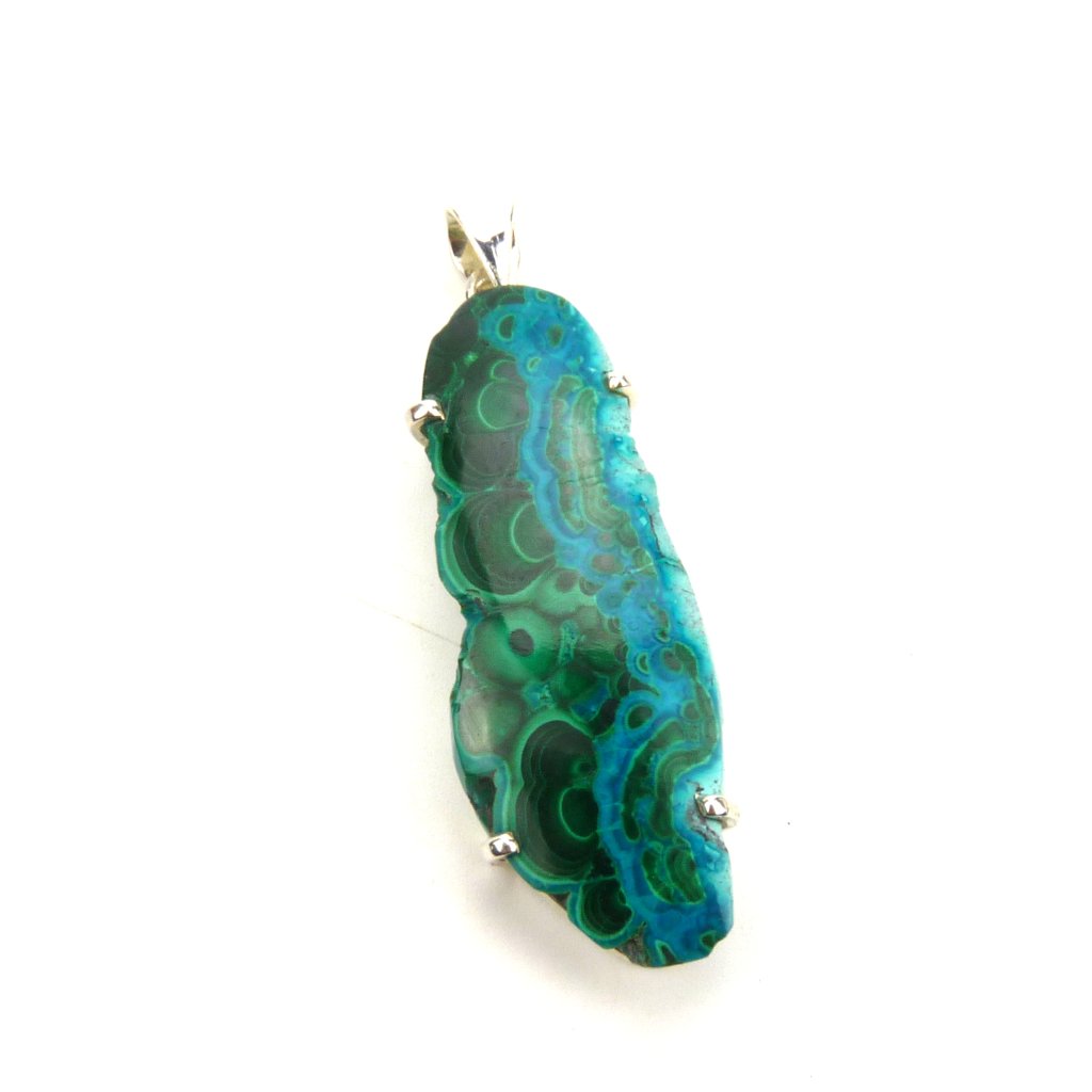 Přívěsek Ag 925/1000 krásného leštěného kamene Malachitu s Chryzokolem.