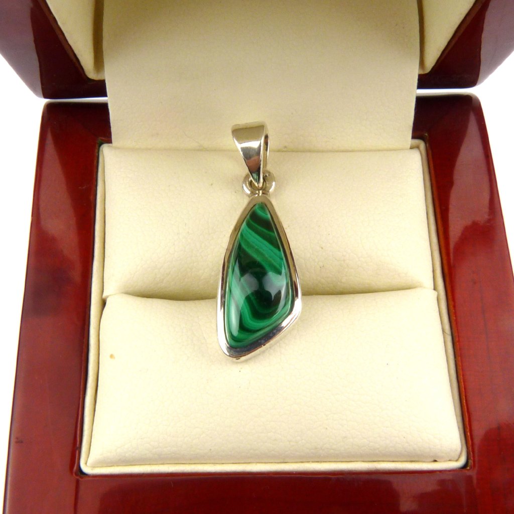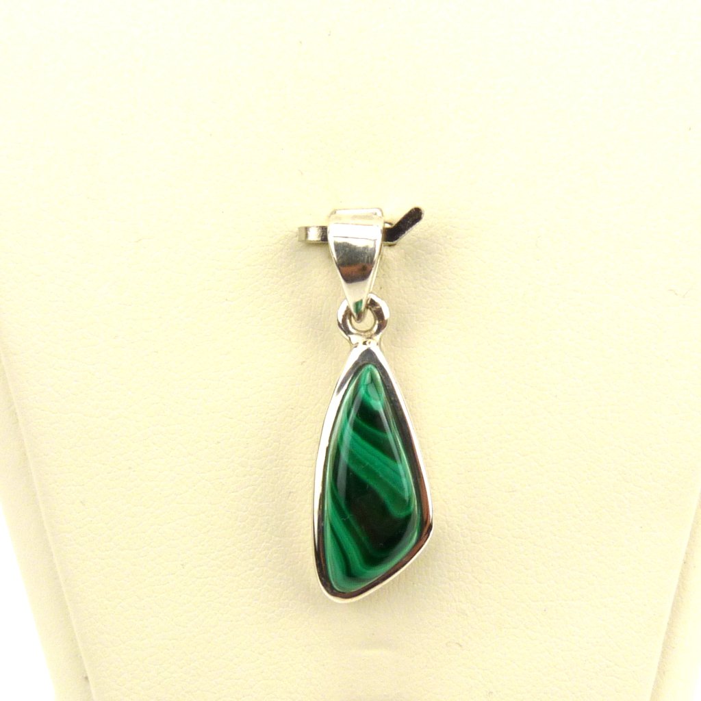 Přívěsek Ag 925/1000 krásného leštěného kabošonu Malachitu.