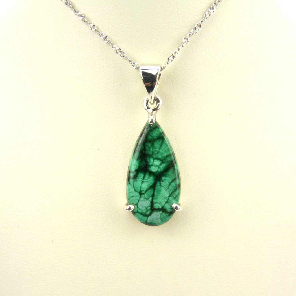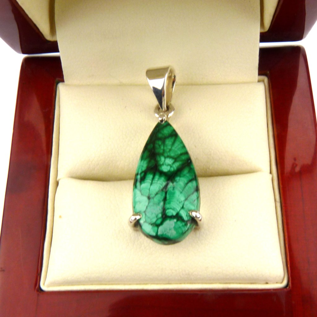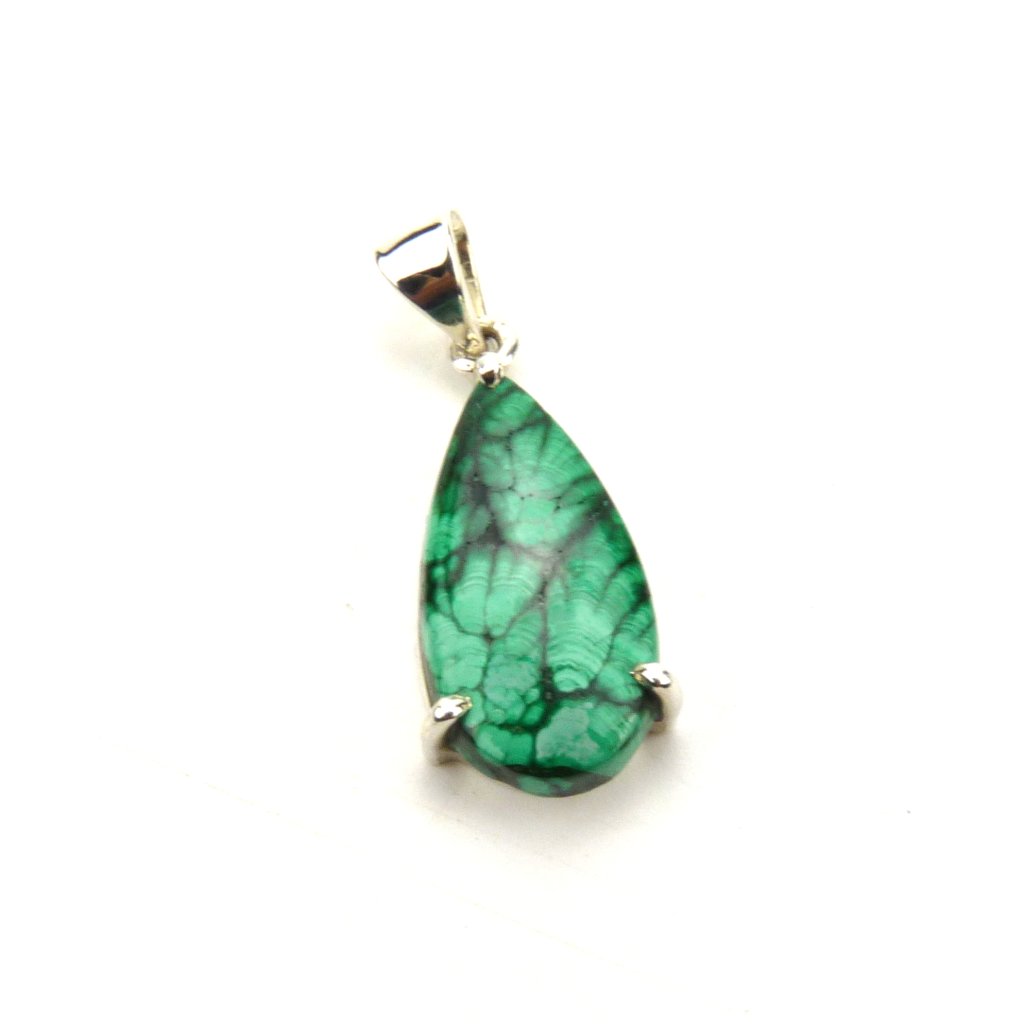 Přívěsek Ag 925/1000 krásného leštěného kabošonu Malachitu.