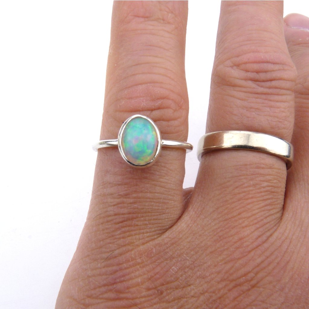 Krásný prstýnek z leštěného Etiopského Opálu ve stříbře Ag 925/1000 Rhodium.