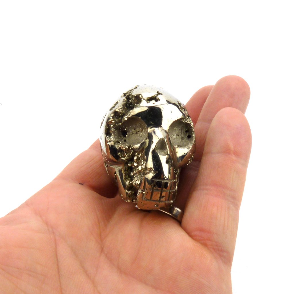 Krásný Pyrit vybroušený do tvaru lebky, vysoké kvality.