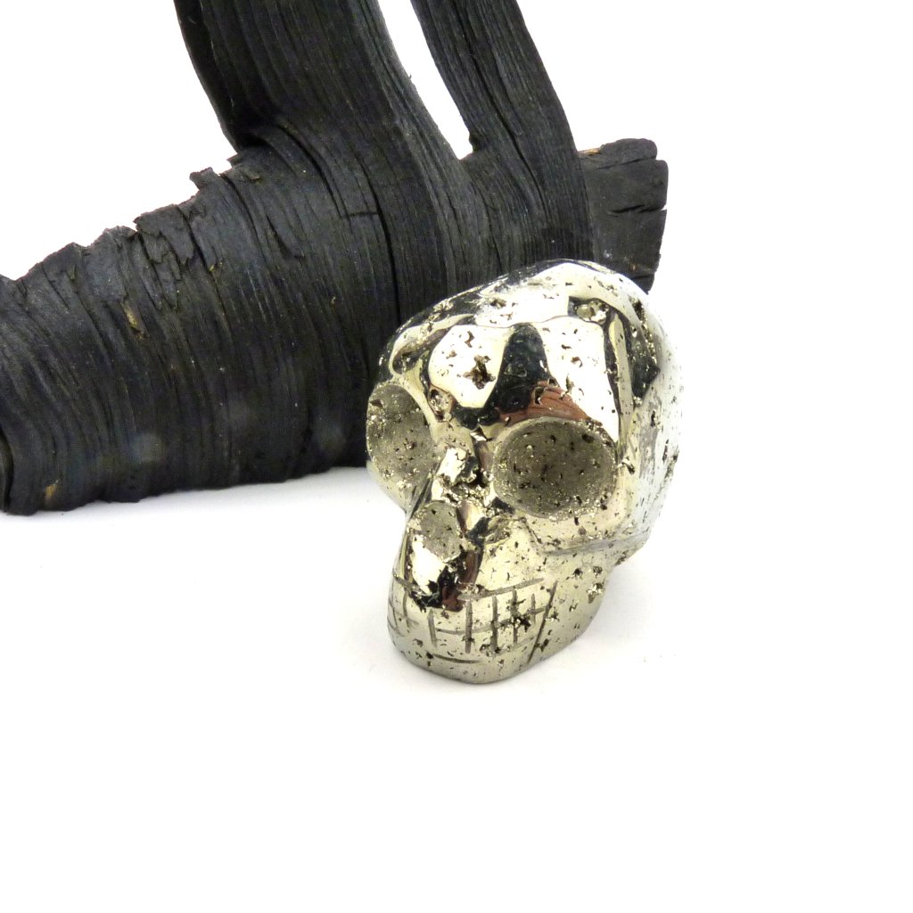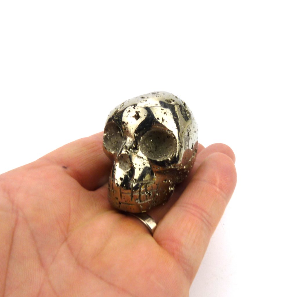 Krásný Pyrit vybroušený do tvaru lebky, vysoké kvality.