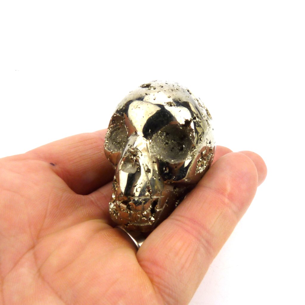 Krásný Pyrit vybroušený do tvaru lebky, vysoké kvality.