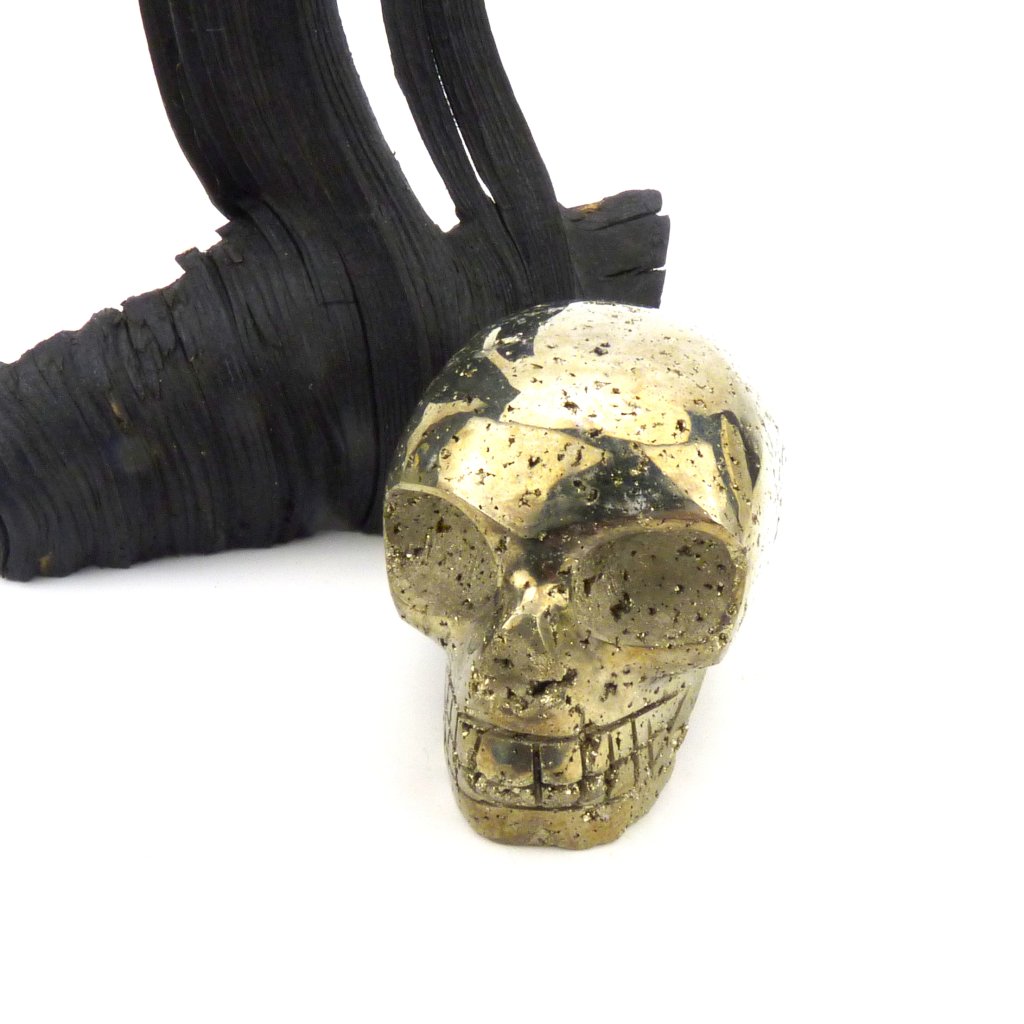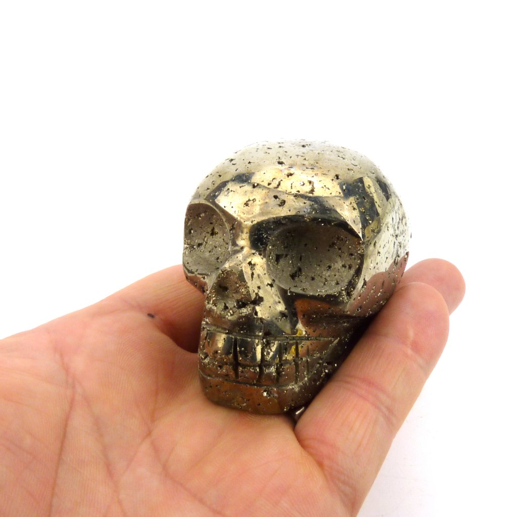 Krásný Pyrit vybroušený do tvaru lebky, vysoké kvality.