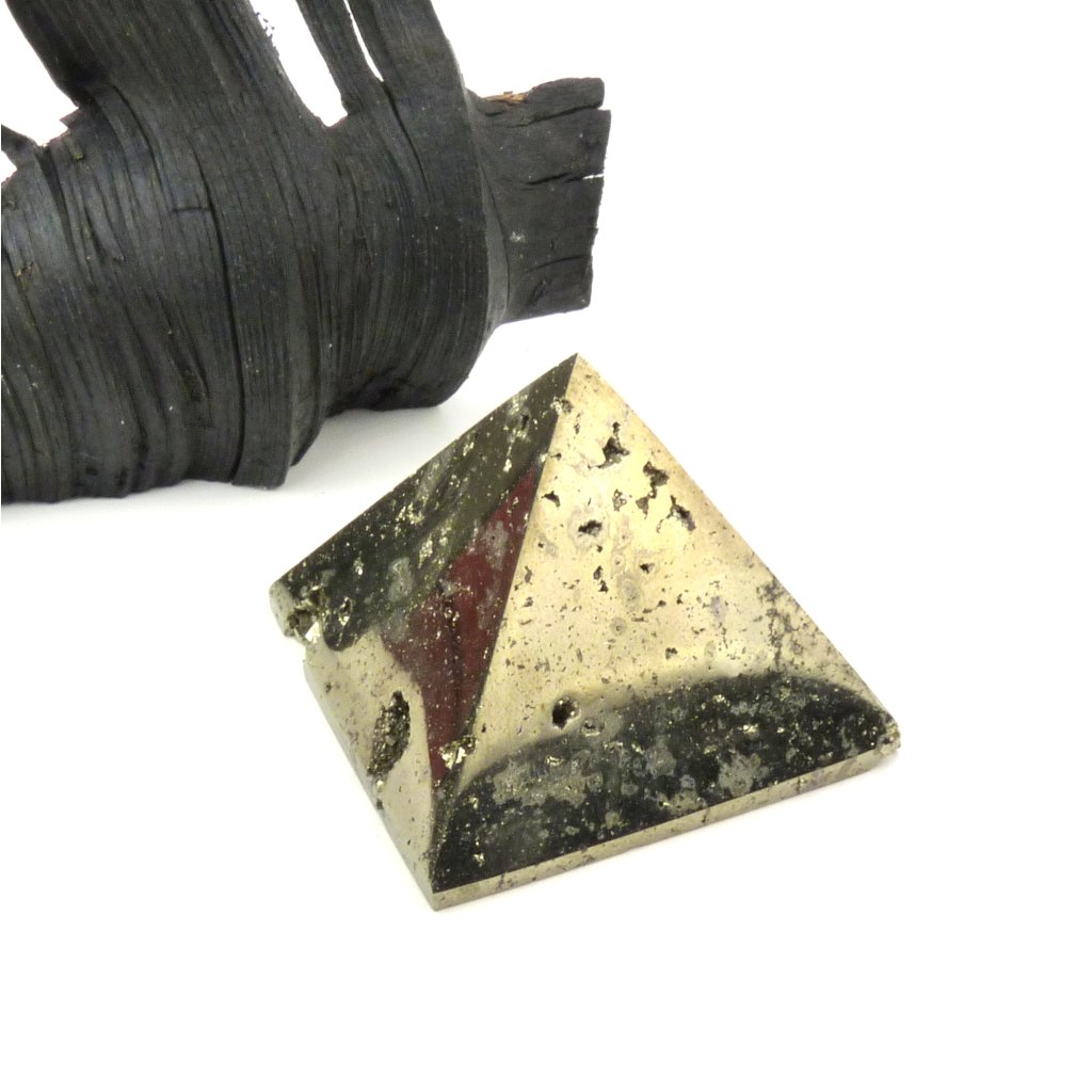 Krásný kámen Pyritu ve tvaru pyramidy.