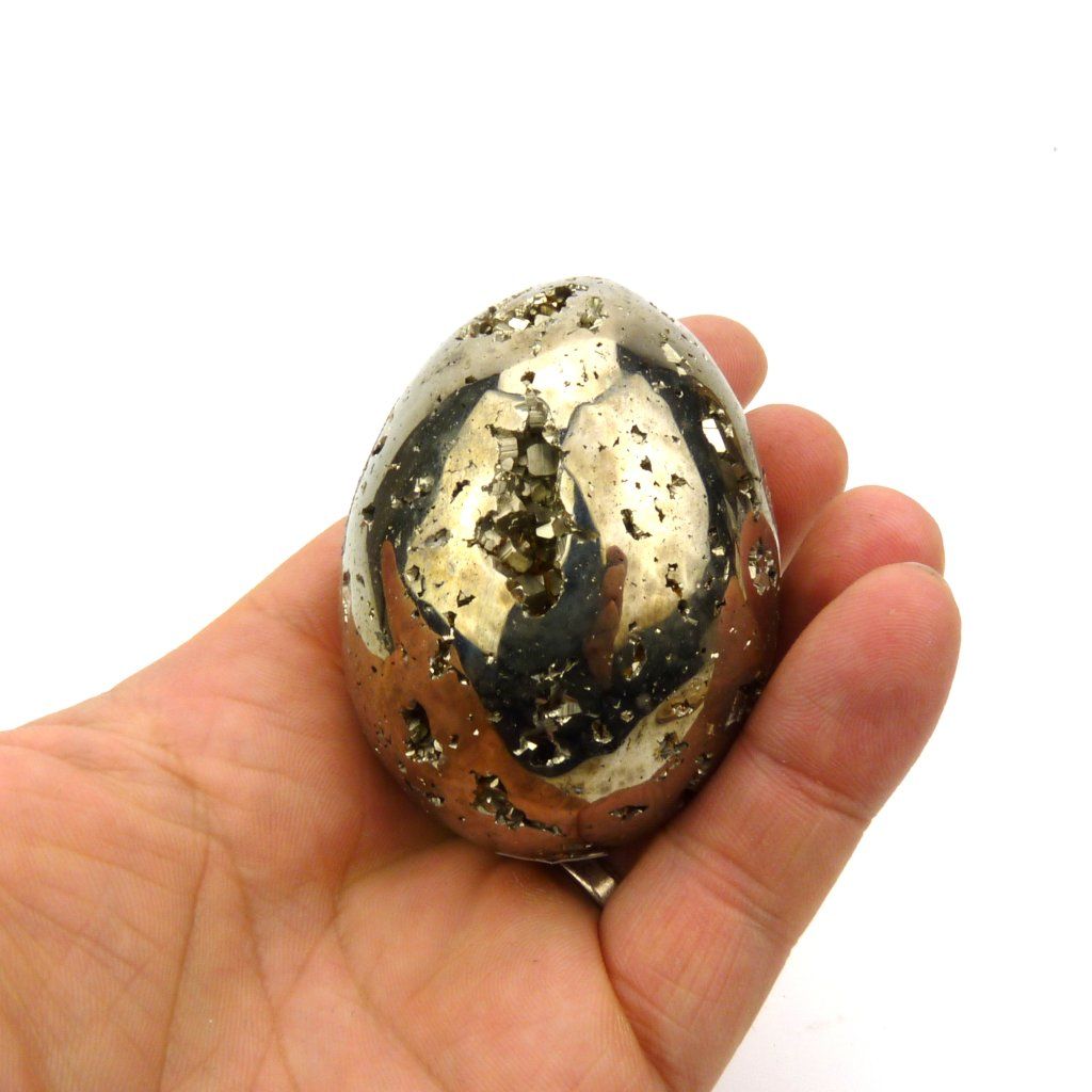 Krásný Pyrit vybroušený do tvaru vejce, vysoké kvality.