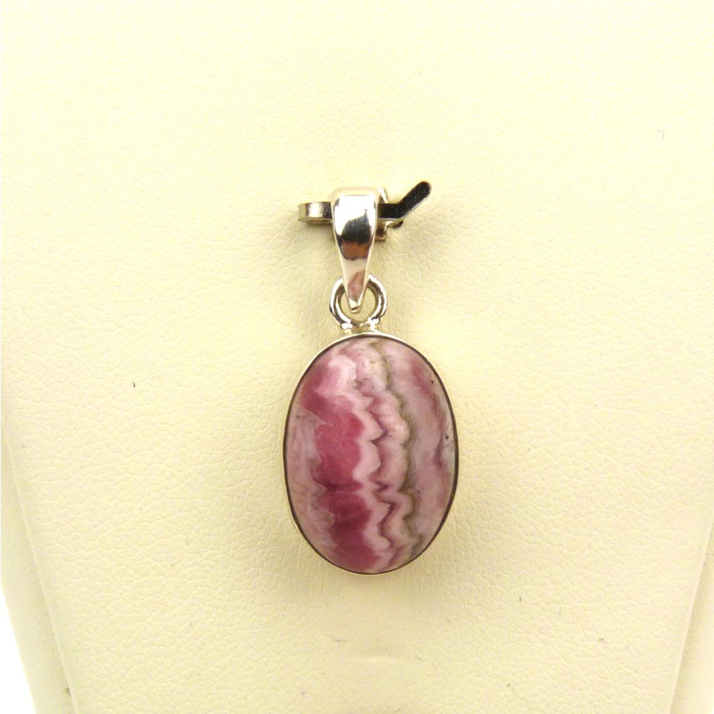 Přívěsek leštěného Rodochrozitu ve stříbře Ag 925/1000.