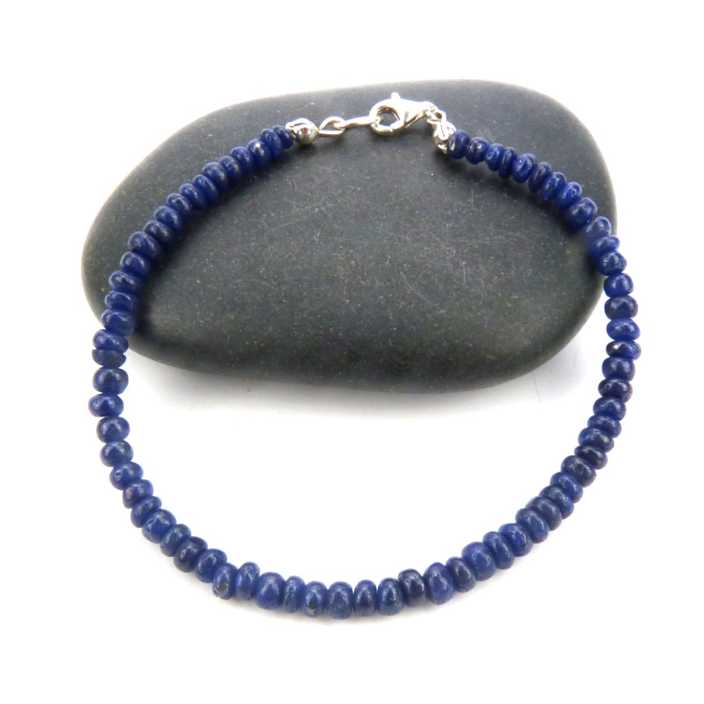 Exluzivní náramek modrého Safíru, leštěného do tvarů butonků o velikosti cca. 2,5 až 3 mm.