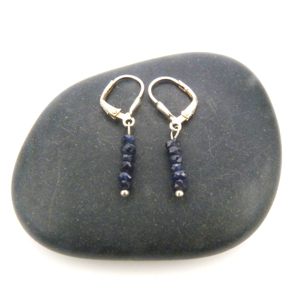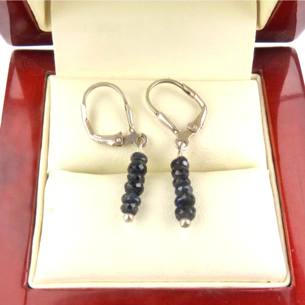 Přírodní náušnice modrého Safíru, broušeného do tvarů butonků o velikosti cca. 2,5 mm.