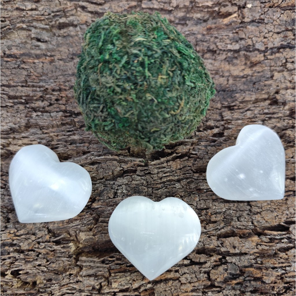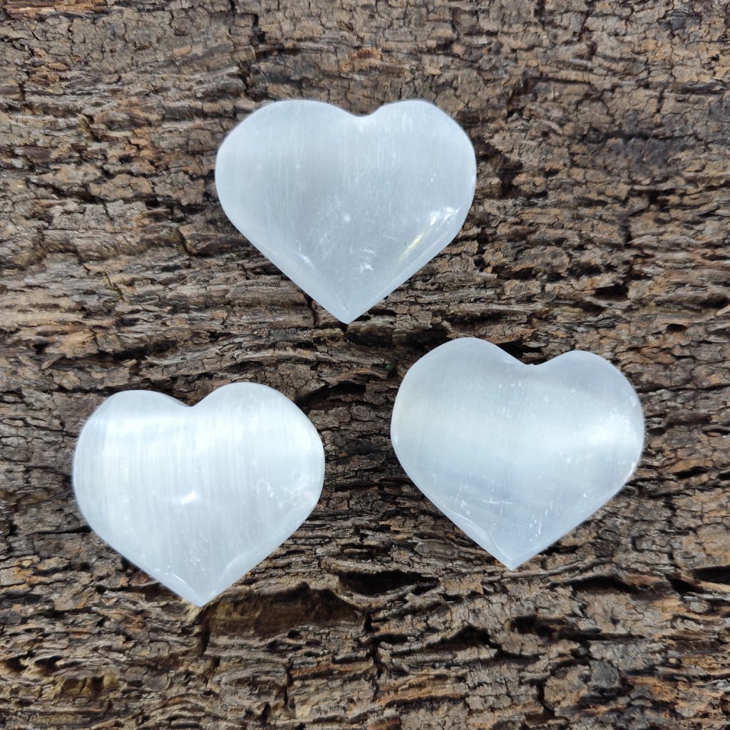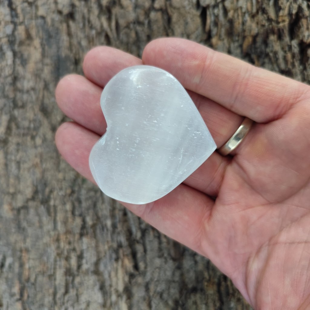 Leštěný kámen Selenitu do tvaru srdíčka.