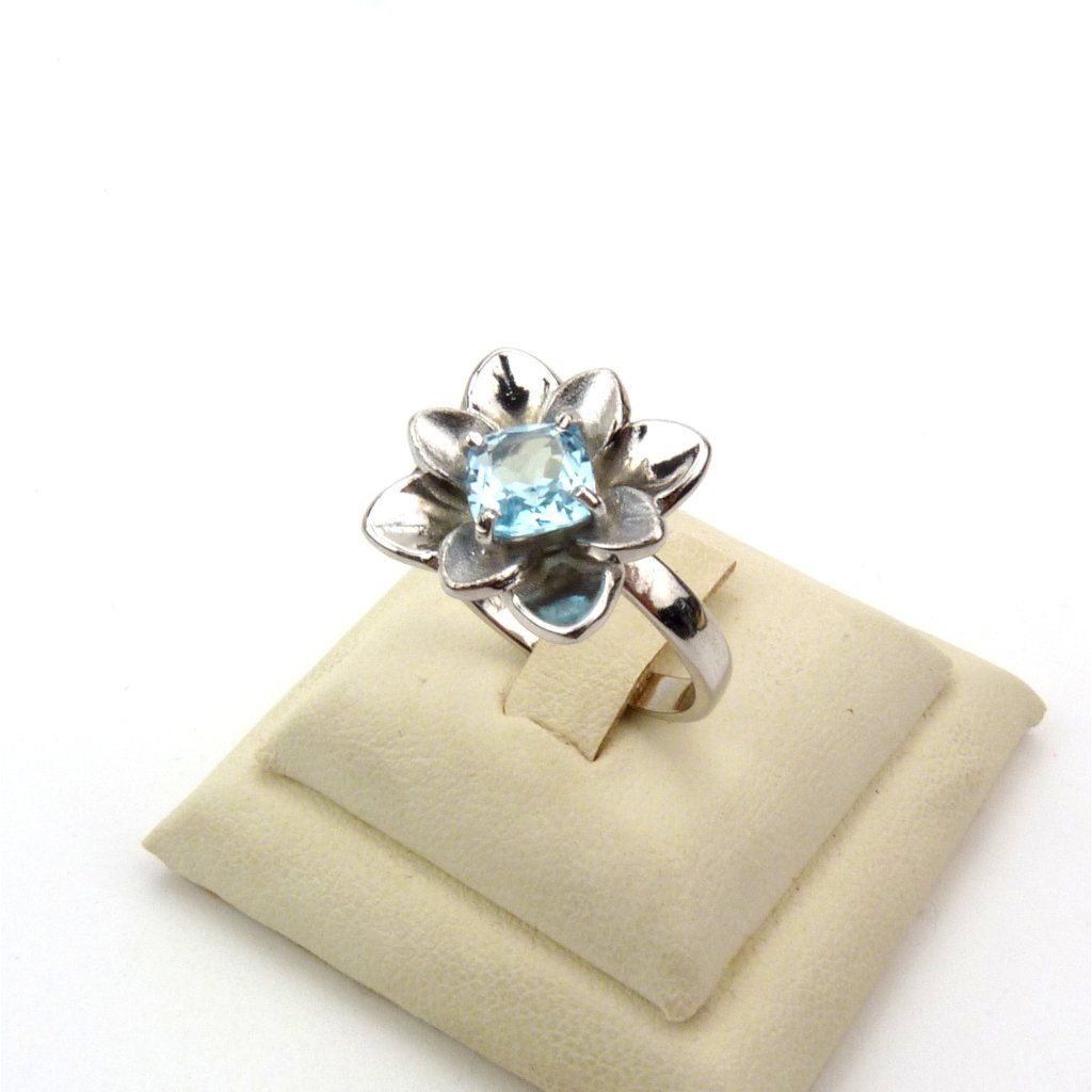 Krásný prstýnek z broušeného modrého Topazu ve stříbře Ag 925/1000 Rhodium.