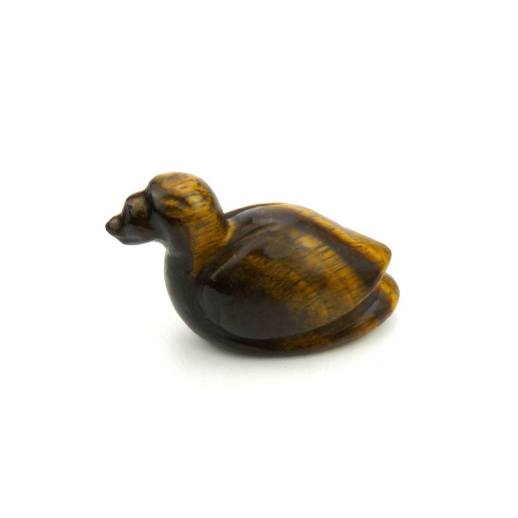 Kámen Tygřího oka vybroušený do tvaru kachny.