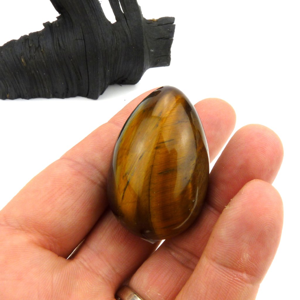 Krásný kámen Tygřího oka leštěný do tvaru vejce.