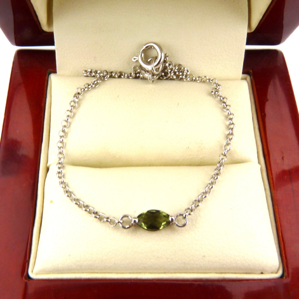 Elegantní vltavínový náramek ve stříbře Ag 925/1000 Rhodium.