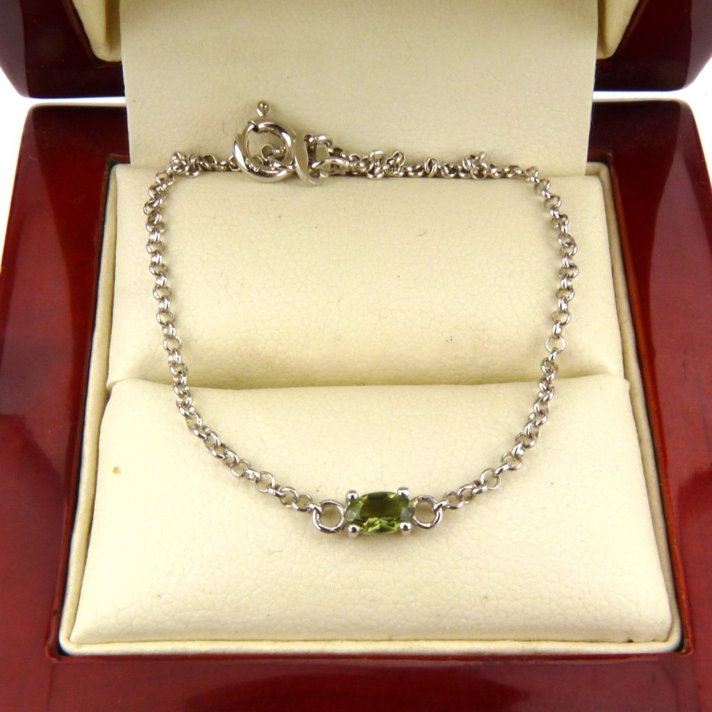 Elegantní vltavínový náramek ve stříbře Ag 925/1000 Rhodium.