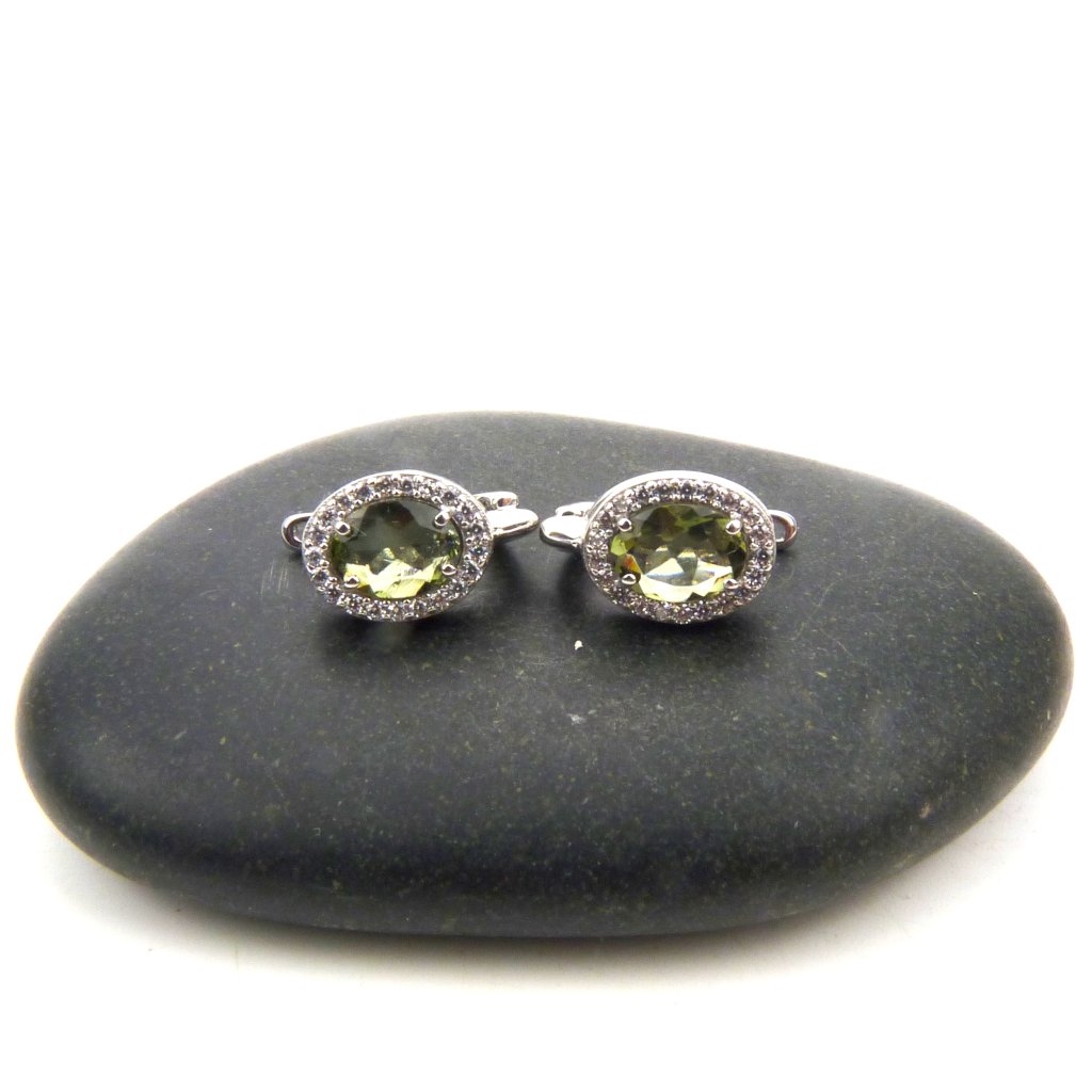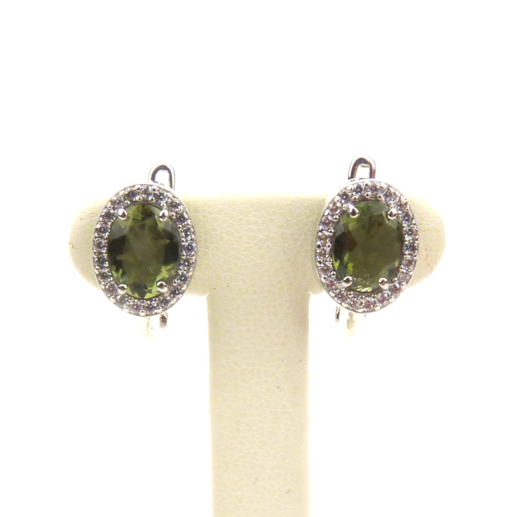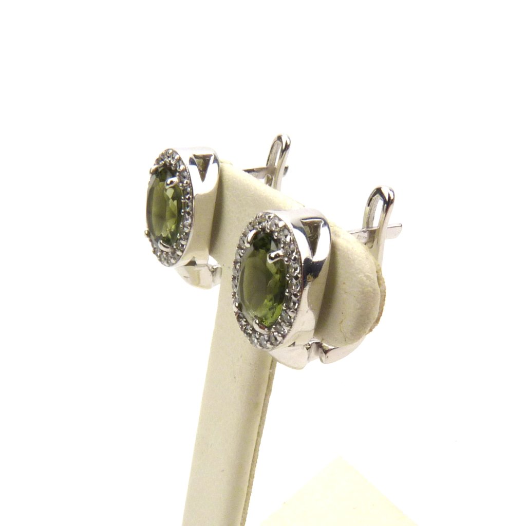 Elegantní vltavínové náušnice ve stříbře Ag 925/1000 Rhodium.