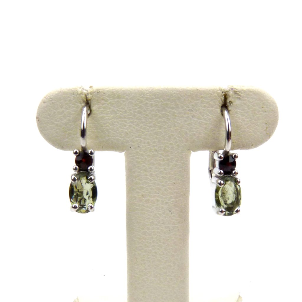 Elegantní vltavínové náušnice ve stříbře Ag 925/1000 Rhodium.