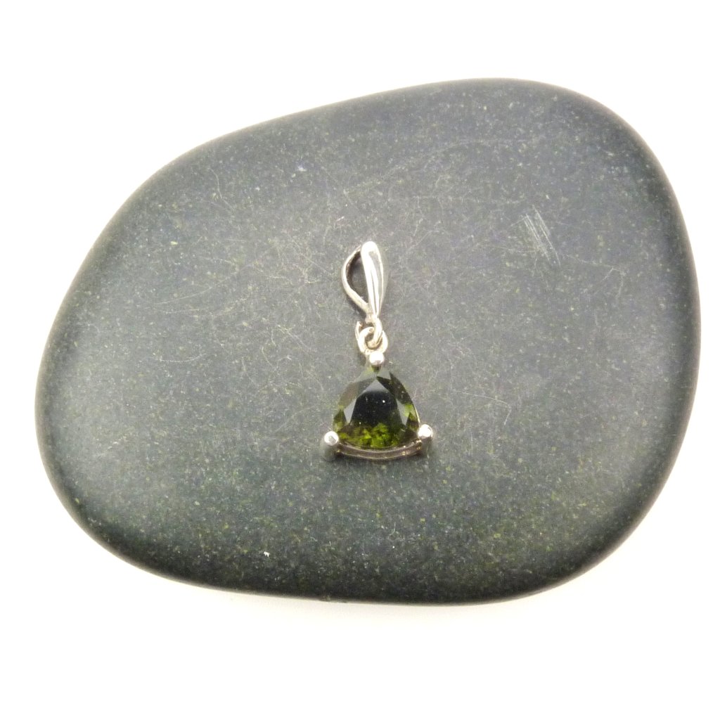 Vltavínový přívěsek broušený ve tvaru Trillion ve stříbře Ag 925/1000.