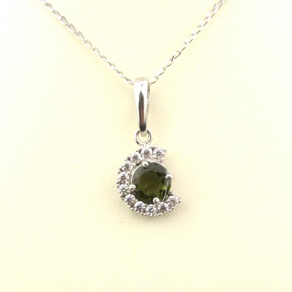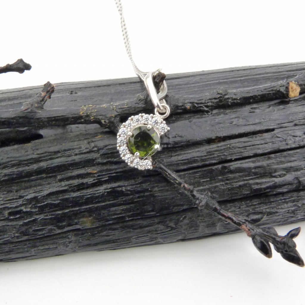 Vltavínový přívěsek ve stříbře se zirkony Ag 925/1000 Rhodium ( povrchová úprava šperku ).