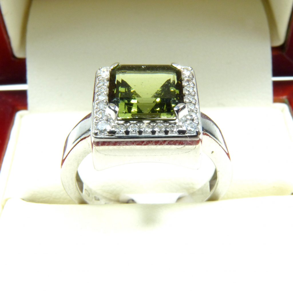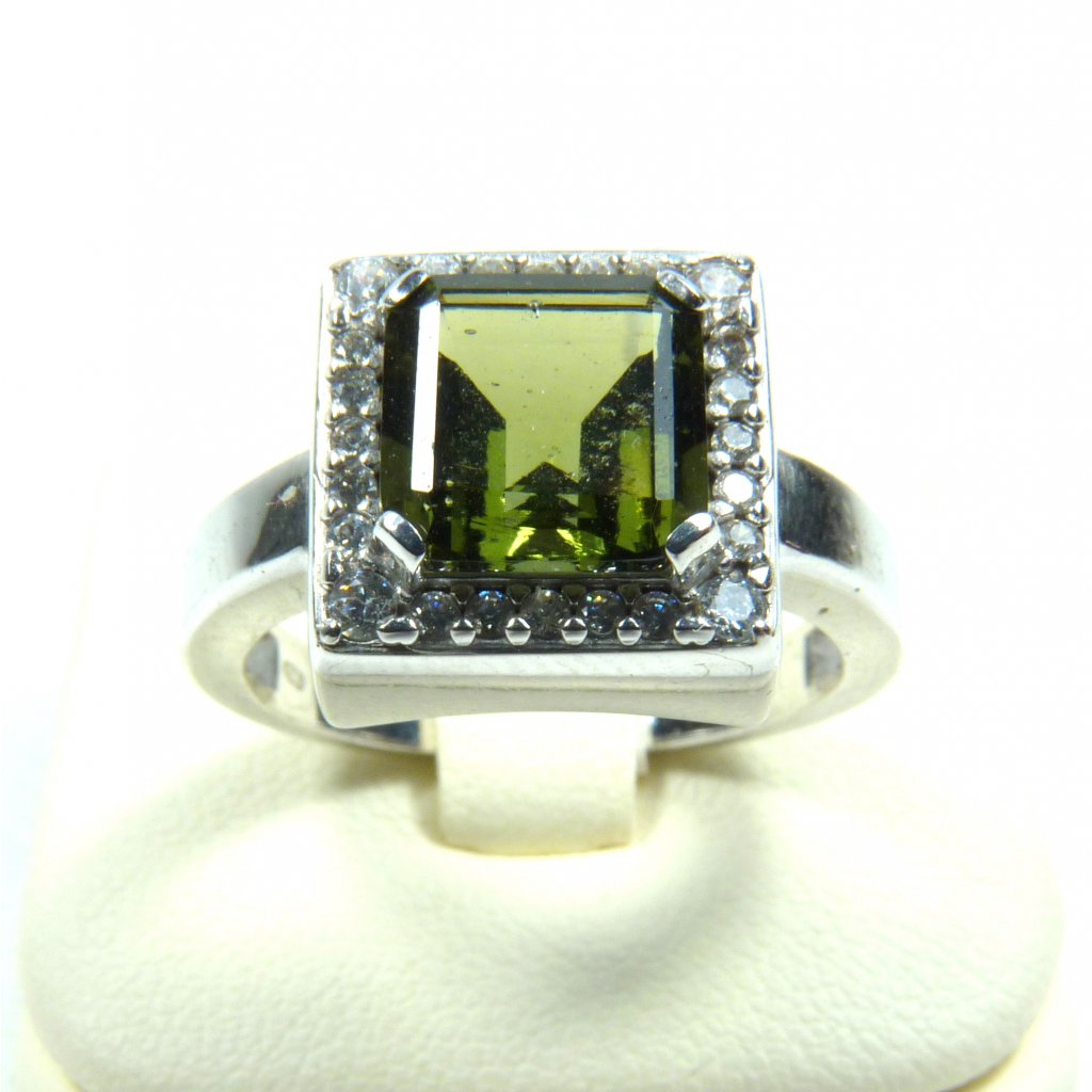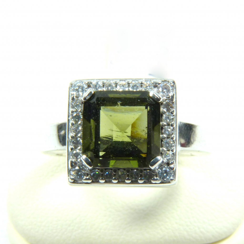 Vltavínový prsten ve stříbře Ag 925/1000