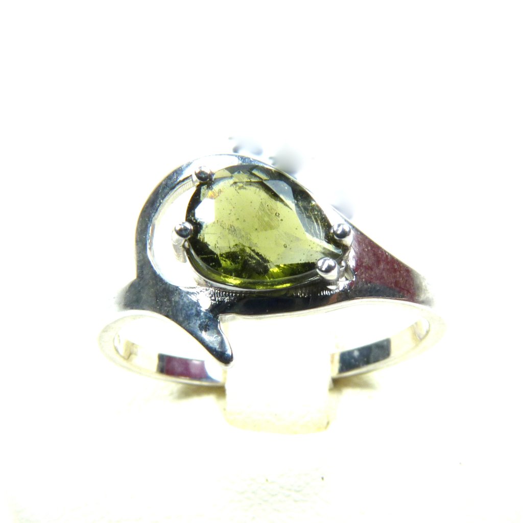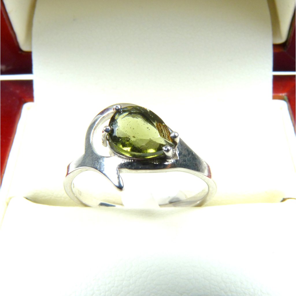 Vltavínový prsten ve stříbře Ag 925/1000 Rhodium ( povrchová úprava šperku ).