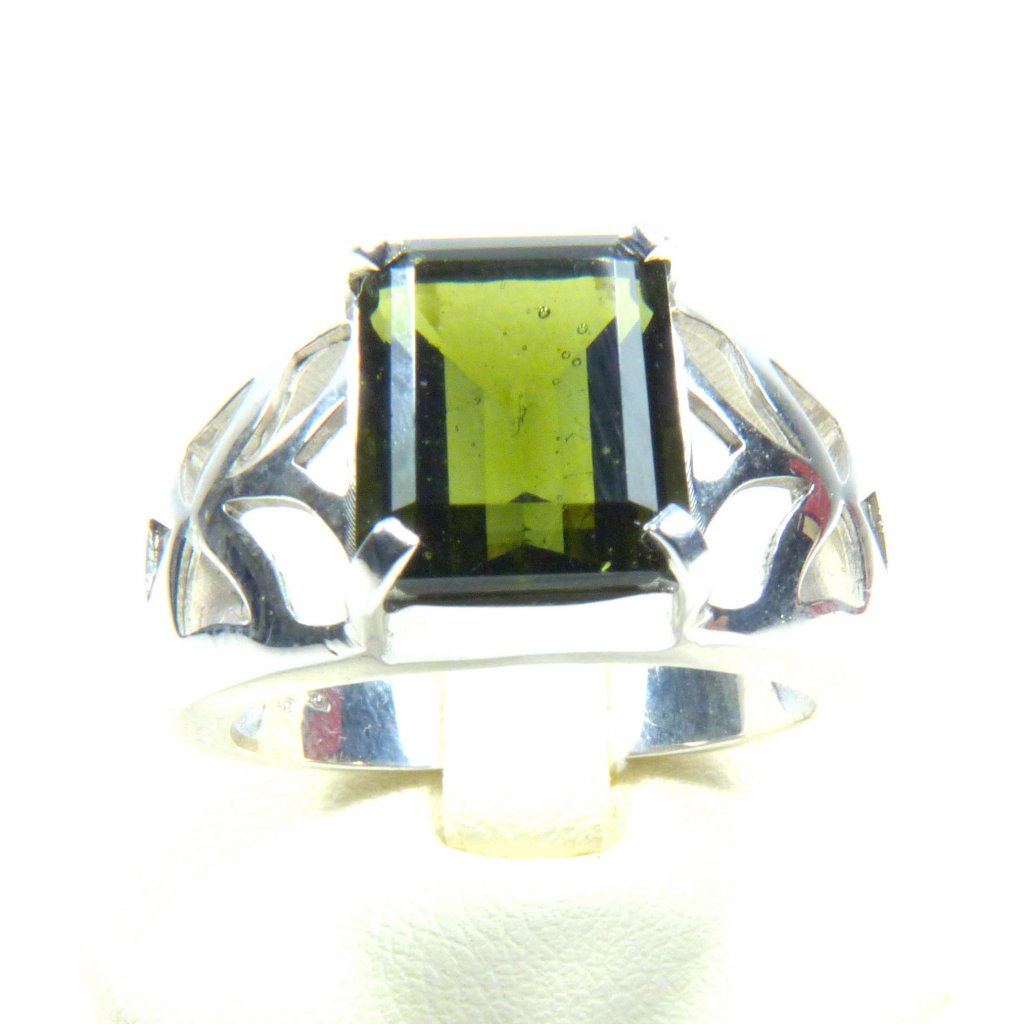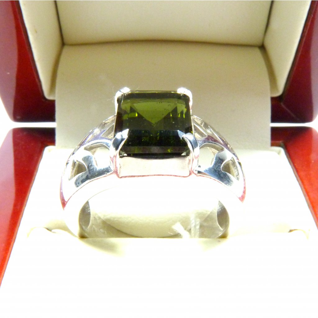 Vltavínový prsten ve stříbře Ag 925/1000 Rhodium ( povrchová úprava šperku ).