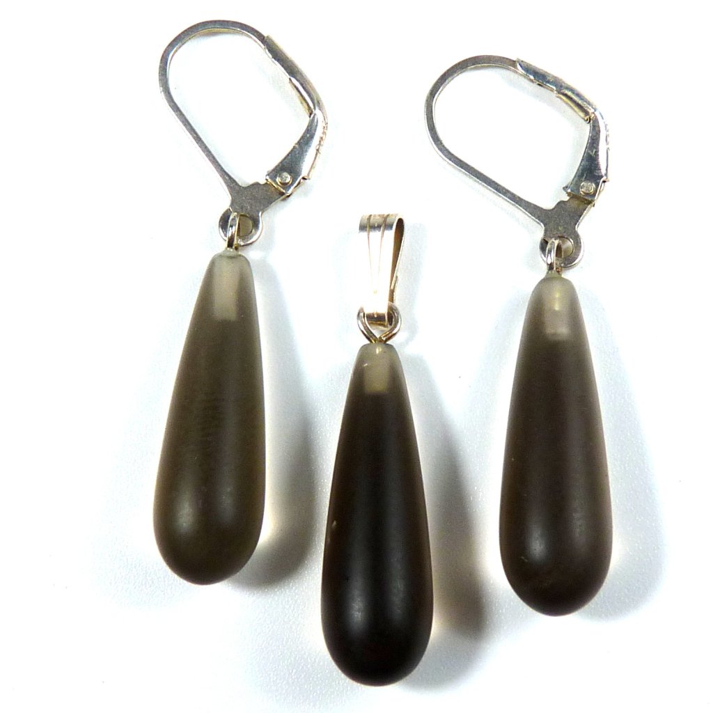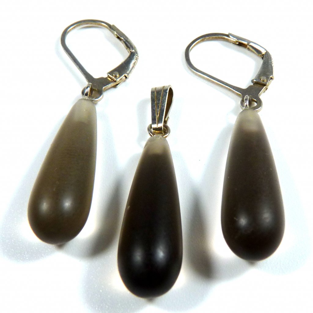 Náušnice a přívěsek z pravé Záhnědy. Kameny jsou leštěné do tvaru kapek o velikosti cca. 6*22 mm.